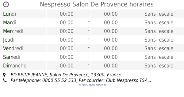 It is also possible to : Modifier ces HEURES D'OUVERTURE of Store Nespresso Dans Salon De Provence, BD REINE JEANNE,